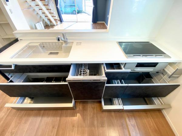 土地50坪以上 / 南側道路面す / 閑静な住宅地 / 角地 / 2階建 / 南向き / LDK20畳以上 / フローリング / リビング階段 / 24時間換気システム / 室内物干し / 全居室収納 / ウォークインクローゼット / クローゼット / シューズボックス / システムキッチン / 対面式キッチン / 食器洗乾燥機 / 浴室に窓 / シャワー付洗面化粧台 / トイレ2ヶ所 / 温水洗浄便座 / タンクレストイレ / 室内洗濯機置場 / 南庭 / 駐車3台以上可 / TVモニタ付インターホン / 都市ガス