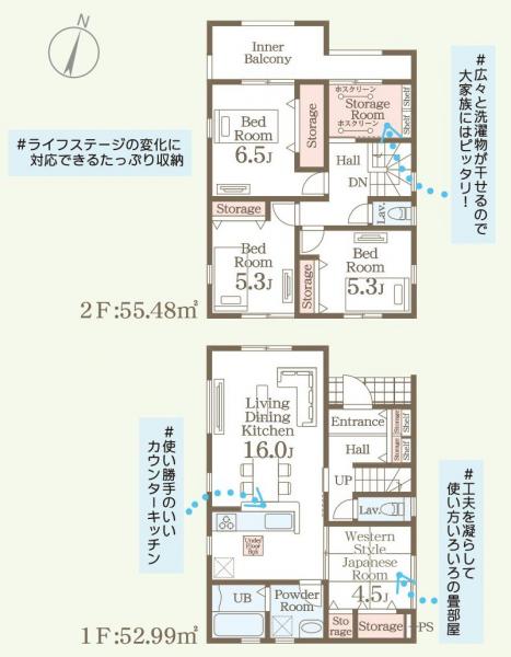 設計住宅性能評価書 / 建設住宅性能評価書(新築時) / 耐震構造 / フラット35・S適合証明書 / 市街地が近い / 閑静な住宅地 / 前道6m以上 / 2階建 / LDK15畳以上 / 和室 / フローリング / 人感センサー付照明 / 24時間換気システム / 室内物干し / 全居室収納 / 床下収納 / クローゼット / システムキッチン / 対面式キッチン / カウンターキッチン / 浄水器 / 浴室乾燥機 / 浴室に窓 / シャワー付洗面化粧台 / トイレ2ヶ所 / 温水洗浄便座 / 室内洗濯機置場 / バルコニー / 複層ガラス / 駐車2台可 / TVモニタ付インターホン / スーパー 徒歩10分以内 / 小学校 徒歩10分以内 / 小学校まで1km以内 / フラット35Sに対応 / 都市ガス